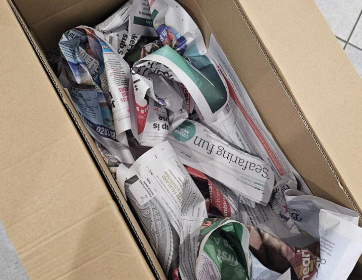 Line your box with scrunched-up newspaper or tissue paper to create a soft, protective padding and prevent the flowers from moving during transit.
